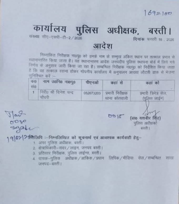 बस्ती। जनपद पुलिस महकमे में अनुशासन और मर्यादा को लेकर बड़ा संदेश सामने आया है। महिला सिपाही से कथित बदसलूकी के मामले में पुलिस अधीक्षक डॉ. यशवीर सिंह ने त्वरित और कड़ा रुख अपनाते हुए बस्ती कोतवाली प्रभारी दिनेश चौधरी को तत्काल प्रभाव से लाइन हाजिर कर दिया है।