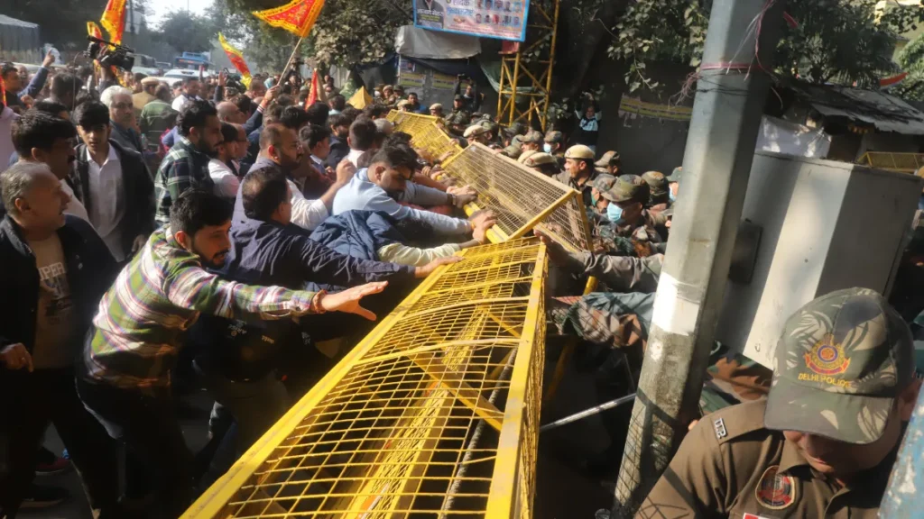 नई दिल्ली। राजधानी के झंडेवाला इलाके में 29 नवंबर 2025 को नगर निगम (MCD) ने बड़े पैमाने पर अतिक्रमण विरोधी अभियान चलाते हुए पुराना धार्मिक परिसर — झंडे वाला मंदिर कंप्लेक्स और आसपास के कई ढांचों पर बुलडोज़र चलाया। कार्रवाई सुबह से शुरू हुई और देर शाम तक चलती रही। पूरे अभियान के दौरान भारी पुलिस बल तैनात रहा।