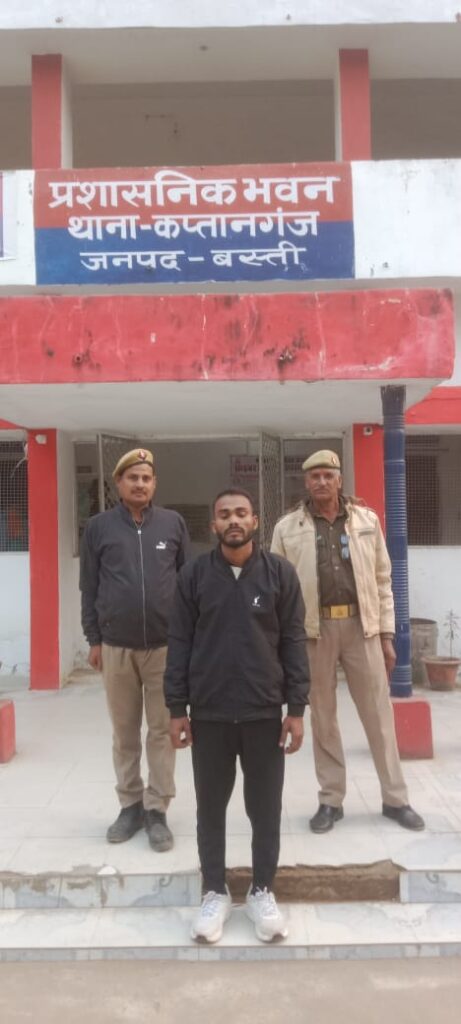 थानाध्यक्ष कप्तानगंज के कुशल नेतृत्व में थाना स्थानीय पर पंजीकृत मु0अ0सं0 185/2025, धारा 137(2), 87 बीएनएस के अंतर्गत वांछित अभियुक्त शिवपाल पुत्र ठाकुर प्रसाद, निवासी ग्राम करचोलिया, थाना कप्तानगंज, जनपद बस्ती (उम्र लगभग 25 वर्ष) को दिनांक 14.12.2025 को समय करीब 02:45 बजे गिरफ्तार किया गया।
