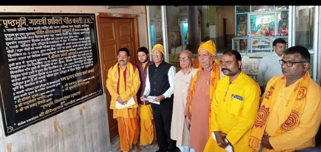 बस्ती आज रविवार को गायत्री शक्ति पीठ मन्दिर रोडबेज बस्ती में मन्दिर के निर्माण प्राण-प्रतिष्ठा से लेकर तपोनिष्ट युग पुरूष पंडित श्री राम शर्मा के जीवनकाल में ही हरिद्धार शान्ति कुंज ट्रस्ट के प्रस्ताव, घोषणा पत्र तथा बस्ती ट्रस्ट के लिए, उनके द्वारा नामित संस्थागत ट्रस्टीज के विवरण के साथ “पृष्ठभूमि गायत्री शक्ति पीठ” शिलापट्ट का उद्घाटन विधिक परामर्श दाता वीरेन्द्र नाथ पाण्डेय वरिष्ठ अधिवक्ता के द्धारा किया गया |