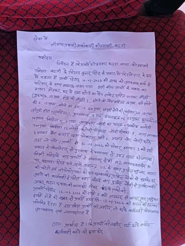 बस्ती चोरी खबर ने एक बार फिर यह सवाल खड़ा कर दिया है कि बंद मकानों की सुरक्षा कैसे सुनिश्चित की जाए, खासकर तब जब परिवार किसी जरूरी काम से बाहर गया हो।