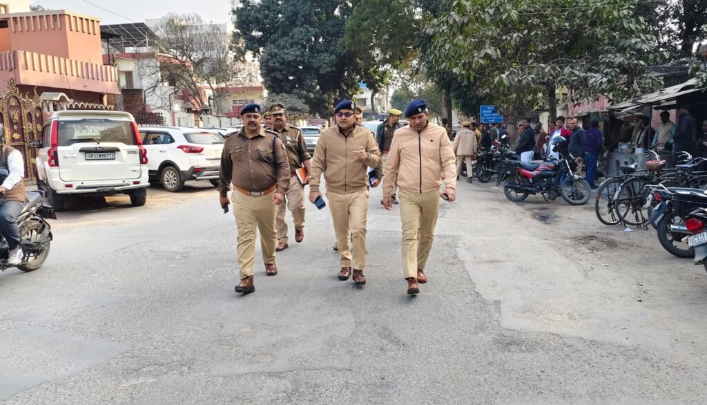 इस दौरान पुलिस अधीक्षक के साथ अपर पुलिस अधीक्षक बस्ती श्री श्यामकांत एवं क्षेत्राधिकारी सदर श्री सत्येन्द्र भूषण तिवारी भी मौजूद रहे। पुलिस टीम ने प्रमुख मार्गों, बाजारों एवं संवेदनशील इलाकों में पैदल भ्रमण कर लोगों से संवाद किया और सुरक्षा व्यवस्था का जायजा लिया।
