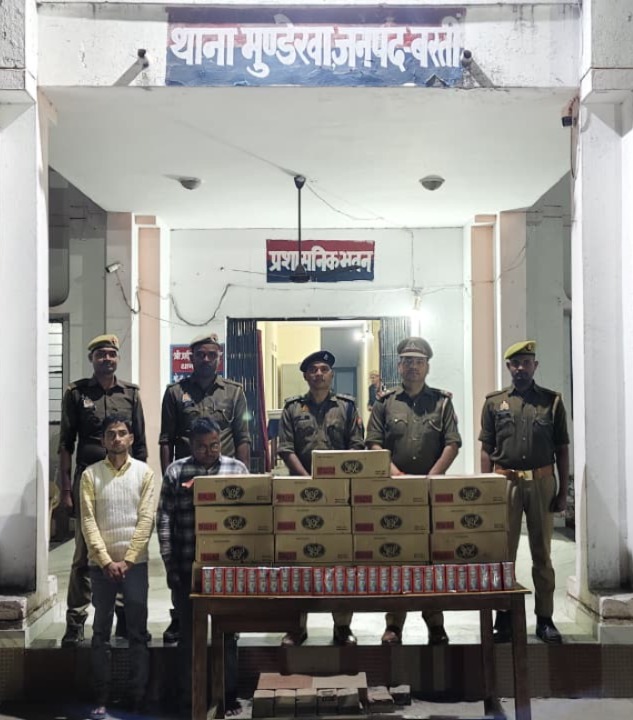 उत्तर प्रदेश के बस्ती जिले में मुंडेरवा अवैध शराब गिरफ्तारी के मामले में पुलिस को बड़ी सफलता मिली है। थाना मुंडेरवा पुलिस ने बिना परमिट देशी शराब बेच रहे दो आरोपियों को गिरफ्तार किया है। पुलिस के अनुसार आरोपियों के पास से बड़ी मात्रा में देशी शराब के टेट्रा पैक और बिक्री से प्राप्त नकदी भी बरामद की गई है। इस कार्रवाई के बाद इलाके में अवैध शराब कारोबार पर पुलिस की सख्ती साफ दिखाई दे रही है।