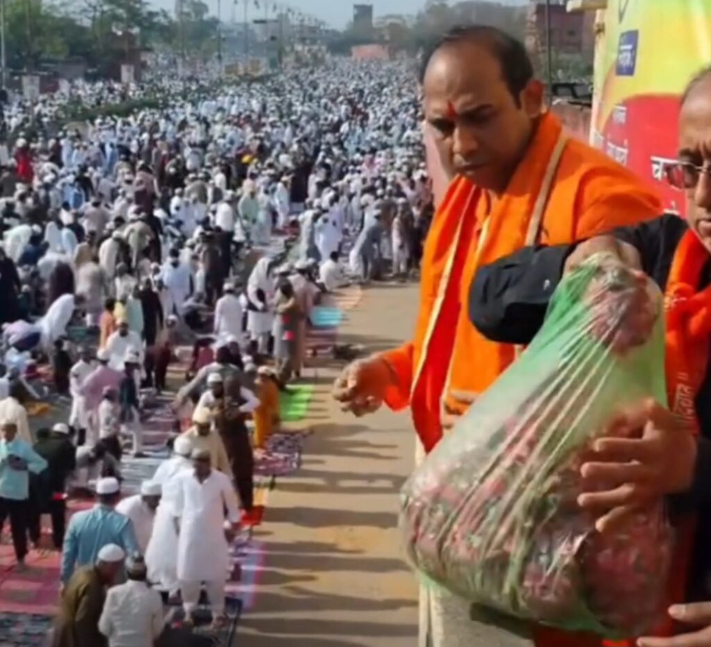 ईद पर दिखी हिंदू मुस्लिम एकता की मिसाल, नमाज के बाद बरसे फूल