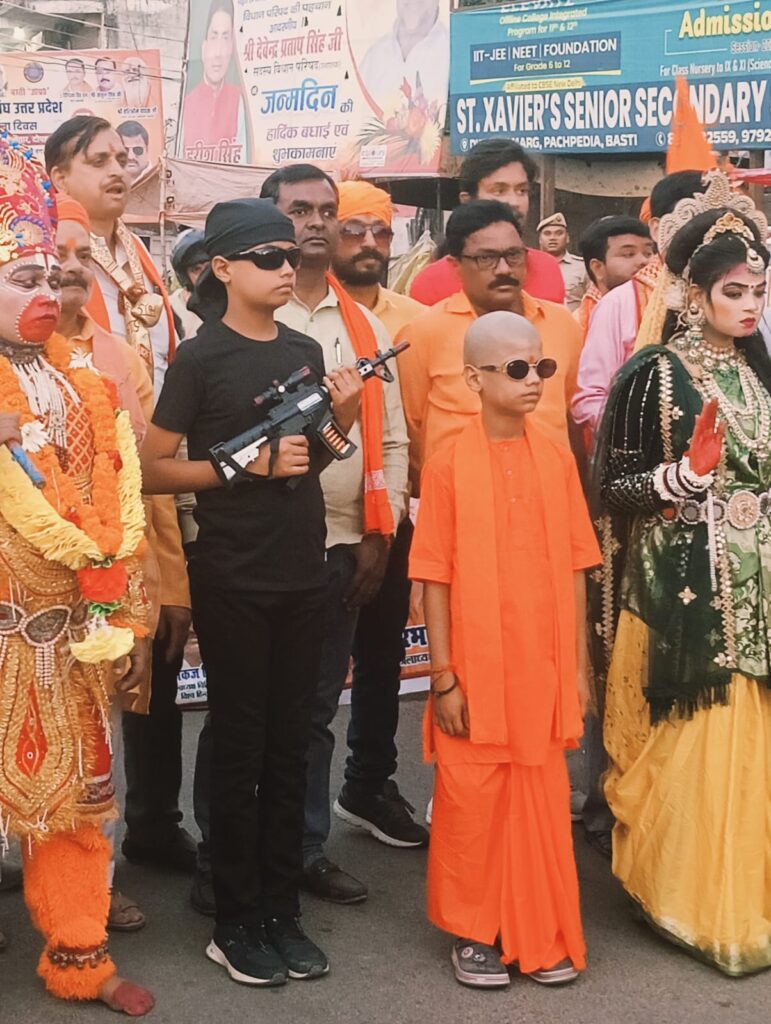 Vishva Hindu Mahasangh Shobha Yatra में कई आकर्षक झांकियां प्रस्तुत की गईं। खास तौर पर भगवान हनुमान की झांकी और मुख्यमंत्री योगी आदित्यनाथ की छवि लोगों के बीच चर्चा का विषय बनी रही।